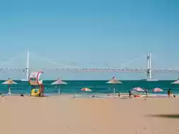 Gwangandaegyo Bridge is a long and beautiful sea bridge, especially beautiful at night when it's illuminated with colorful lights, creating a romantic vantage point. Visitors can enjoy the view from a car or stroll along Gwangalli Beach, perfect for taking photos and videos. The seaside atmosphere and the illuminated bridge are a key landmark of Busan.