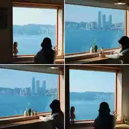 The most beautiful room is the large, long glass window overlooking the Huinnyeoul sea. There are four chairs, making it a great place to take photos.