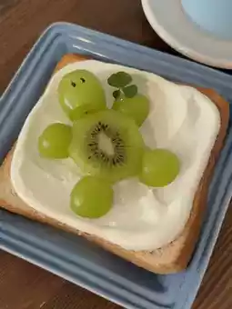 Recommended! 🐢🍀 Turtle Toast (7,000 won) - Shine Muscat grapes and kiwi fruit shaped like turtles - so cute!