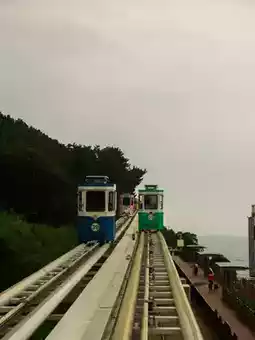 • The harmony of the cliffs and the sea is a highlight: The Dongbaekseom section, riding along the rails next to the sea is a highlight.
