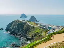 Oryukdo Skywalk, opened in 2013, is a horseshoe-shaped glass bridge perched on a cliff along the Oryukdo coast, where the East and South Seas meet.