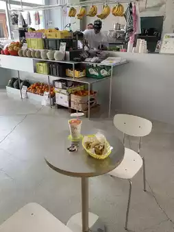This cafe is popular for its drinks and desserts featuring fresh fruit.