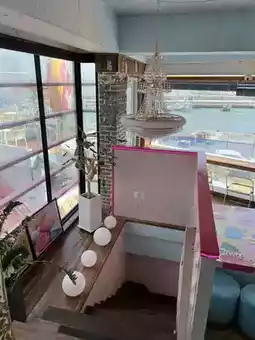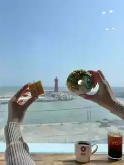 A photogenic shop with colorful donuts overlooking the ocean🩷