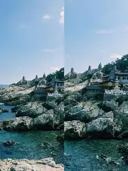 During my trip to Gijang, Busan, I visited Haedong Yonggungsa Temple, which is perched on a seaside cliff, offering a breathtaking blend of temple and ocean scenery. As soon as I entered, the refreshing sea breeze and the sound of waves heightened my anticipation for the journey. Walking slowly along the trail, I was captivated by the dragon sculptures, intricately designed pagodas, and bridges set against the backdrop of the sea.