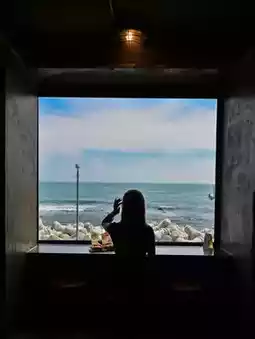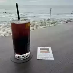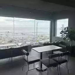 This cafe offers a glass-walled view of the ocean right in front of you.☕️