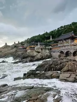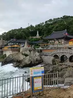 Haedong Yonggungsa Temple is famous for its unique scenery where the sea meets the temple! From the entrance, you can hear the sound of waves, and the pavilions set against the blue sea come into view at once. Perched on a cliff, it feels as if it is floating between the sky and the sea. ๐ The line of zodiac statues is particularly fascinating for children. Climbing the stone steps behind the Buddha statue reveals a refreshing panoramic view of the sea. The combination of incense fragrance and the sound of waves in the breeze brings a sense of peace. Although it attracts many tourists, there are resting spots throughout where you can sit and gaze at the sea. The harmony of the serene temple and the vibrant coastline creates a picturesque scene. Haedong Yonggungsa is a place that offers unforgettable moments during your trip to Busan. ๐