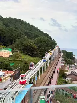 and you'll see the Blue Line Park Sky Capsule and the train tracks,