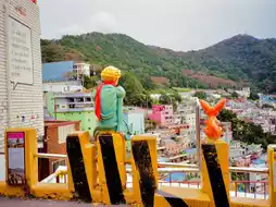As you wander through the village, you'll find narrow alleys filled with colorful houses, cafes, souvenir shops, and street art that narrates the history of Gamcheon. Each alley has its unique charm, such as the fish staircase, pigeon wall, or the "Little Prince" viewpoint featuring a statue of the Little Prince and the fox—a popular photo spot often with long queues but worth the wait.