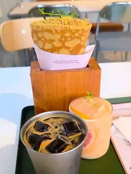 Freshly baked desserts and unique beverage menu / Popular as a relaxing cafe with great ambiance in Jeonpo Cafe Street / A photogenic space with artistic arrangements