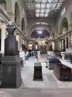 The Egyptian Museum, located in the heart of Cairo, boasts a classical-style building with a pink façade and an elegant, chic exterior. It's one of Egypt's most iconic museums. It houses over 120,000 precious artifacts, spanning prehistoric times to the Roman period. The collection is so extensive that a single day wouldn't be enough to fully explore it all, and every corner is a treasure trove of history.