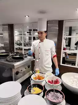 The meals on board are a delightful surprise, with each meal being quite sumptuous. Common dishes include roasted chicken, stewed lamb, rice, salads, desserts, and fruits, offering a satisfying and diverse dining experience.