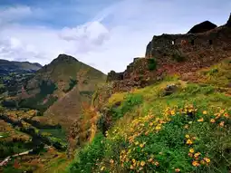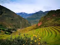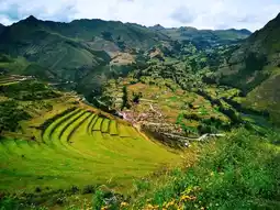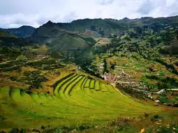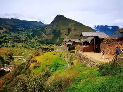 The site features houses built along the mountain, with stone walls and thatched roofs, exuding a strong sense of history. The small cavities on the mountain walls were once burial sites for commoners during the Inca period. The semi-circular terraces extending from the mountain down into the valley are truly spectacular. Hundreds of years ago, the Incas cultivated these terraces, but since being designated as a national cultural heritage site, they are now protected and no longer used for farming.