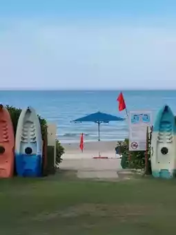 The resort's tranquil surroundings, with the gentle sound of lapping waves providing a backdrop throughout the day, offer a truly relaxing experience. In the evenings, guests can stroll along the long stretch of beach, enjoy the cool sea breeze, or sip a drink at the poolside bar, where soft lighting and live music create the perfect romantic atmosphere.