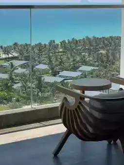 The resort's design combines modernity with a local touch. Rooms feature soothing, soft tones, abundant natural light, and private balconies offer unobstructed views of the sunset over the sea. A comprehensive range of facilities, including a beachfront pool, fine-dining restaurants, a luxurious spa, and a fitness center with stunning views, ensure every moment of your stay is a truly enjoyable one.