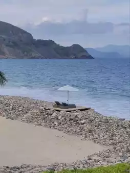 The resort's surroundings are serene, with the gentle sound of waves lapping against the shore providing a sense of peace and freedom from stress. Additionally, the well-maintained green gardens add freshness to every step, and guests can easily walk to the resort's private beach to enjoy the sea breeze and warm sunlight.