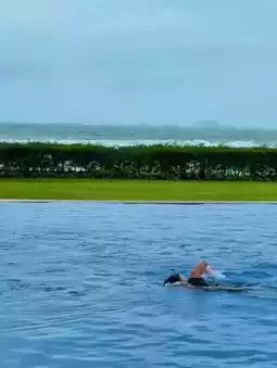 The outdoor pool in the courtyard is 1.1 meters deep, making it suitable for children. It's also surprisingly long, so you don't have to go to the main pool!
