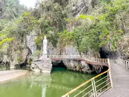 The temple is located at the bottom of a high mountain cliff across the lake, and the Buddha statue floating on the lake is also eye-catching. The temple is small, but because of that, it feels like a small temple in a remote place, surrounded by cliffs, lakes, and surrounding karst mountains. It seems like it is hiding an old martial arts secret.