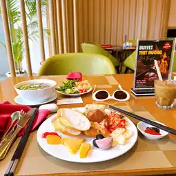 Breakfast is available from 6 to 10 am, and you can eat it at the Mekong restaurant on the first floor if you go inside from the lobby.