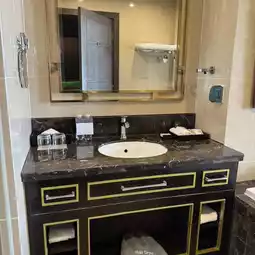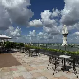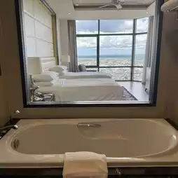 There's a swimming pool, pool bar, Saravan restaurant, and club lounge on the 6th floor, and a fitness center and spa on the 7th floor. The pool is small compared to its size, and there are no cabanas, only sunbeds, so sunglasses are essential because of the direct sunlight.