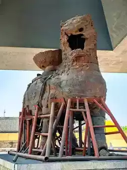 5.5 meters high, 6.3 meters long, 3 meters wide, weighing 40 tons, with a history of over one thousand years. It is the earliest known and largest single-cast outdoor large iron cultural relic in China and even the world.