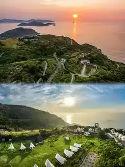 ☑️There is a large lawn by the sea, with small white tents on the lawn, quietly waiting for the sunset, which is very healing.