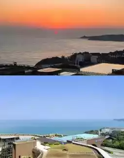 Standing on the balcony of the room and looking out, the sea in the morning is completely covered by a thick fog; at noon, the sun gradually becomes hot, the fog begins to thin, and then slowly rises; as the fog dissipates, the sea is fully displayed in front of you, and the sparkling sea shimmers in the sun.