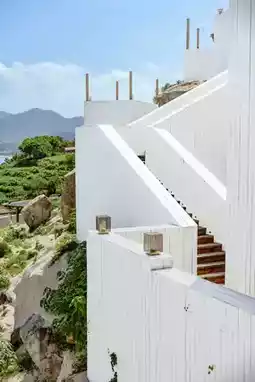 🔵Especially the ocean-facing terrace. It feels like being transported to the blue and white world of Santorini.🌤️