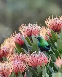 In South Africa, the renowned Cape Floral Region covers only about 0.5% of Africa's area but contains nearly 20% of the continent's plant species. Located on the eastern slopes of Table Mountain, Kirstenbosch National Botanic Garden is known as "Africa's most beautiful garden." Thousands of plant species compete in splendor here, where visitors can learn about rich flora and fauna and see South Africa's national flower, the King Protea. The garden also features a popular 130-meter-high canopy walkway, offering stunning views of the garden and surrounding mountains, filling visitors with joy.