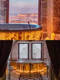 Located on the hillside under Uchisar Castle, the hotel is rebuilt from caves and houses with thousands of years of history, overlooking the magical and magnificent Cappadocia like another planet.