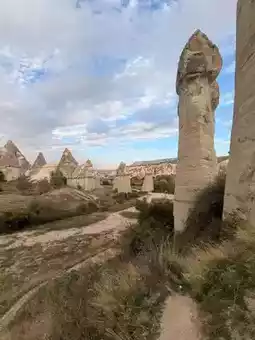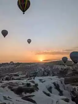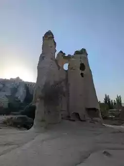 The fairy chimneys in the Paşabağ area are made of solid rock and rise from the ground in a cone shape. The top is shaped like a hat. At sunrise, you can slowly rise with the balloon and overlook the fantastic landscape and underground caves of Cappadocia.