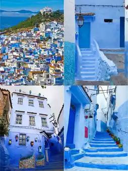 • Chefchaouen: The blue and white town. Stroll through the blue streets and experience the romantic atmosphere.