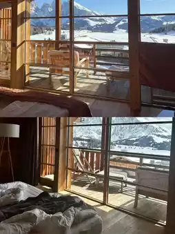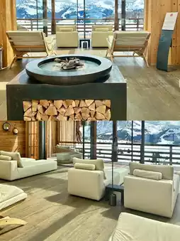 🛏There are 18 suites and 12 chalets. The suites are around 40 sq m, and the chalets are 70 sq m. Family rooms/styles are also available. Each room has a terrace or balcony facing the Alps, underfloor heating for cozy winters, infrared therapy lamps, a small fireplace, and a sauna◇Perfect for warming up and relaxing after skiing.