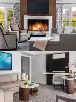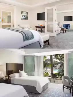 Most rooms have a private terrace or balcony with stunning sea views, and some first-floor sea view rooms also have outdoor fire pits; equipped with luxurious down duvets and pillows, 400-thread-count Egyptian cotton sheets, 55-inch to 65-inch LED flat-screen 1080p smart HDTVs, wireless and wired Internet, in-room laptop-sized safes and power outlets, Nespresso coffee machines, and more; marble bathrooms, most rooms have double sinks