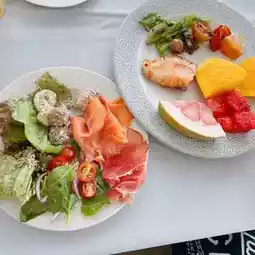 The morning buffet also offers fresh salmon, mangoes, fresh juices, and more.