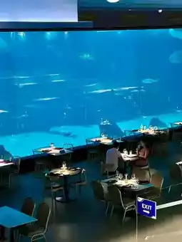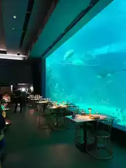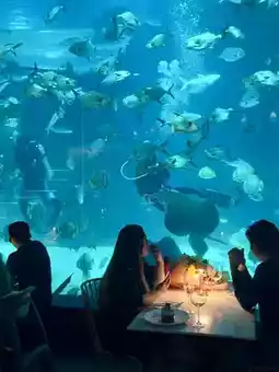 - The atmosphere is unique and serene, surrounded by a variety of sea creatures.