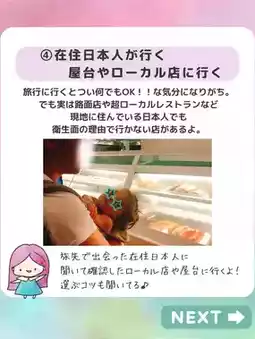 When traveling, it's easy to adopt an "anything goes" mindset. However, even local Japanese residents avoid certain roadside stalls or ultra-local restaurants due to hygiene concerns. Ask Japanese expats you meet during your trip for recommendations on safe places to eat and what to avoid. Also, learn their criteria for judging the hygiene of a place.
