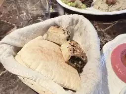 Lunch included salad, beetroot, eggplant, mitabel, falafel, and hummus. Suitable for a vegan diet and low in calories.
