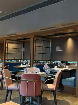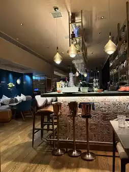 Come to Central for a beautiful Dinner on the weekend to comfort yourself. The restaurant environment is elegant and stylish. The warm yellow lighting creates a romantic atmosphere. The bar table uses colored tiles with copper high stools and glass chandeliers.