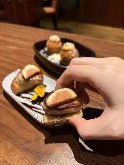 My favorite appetizer, the goose liver has a slightly charred outer layer and a soft inner layer. The butter buns bring a little egg flavor and sweetness, and are balanced just right with the fig sauce.