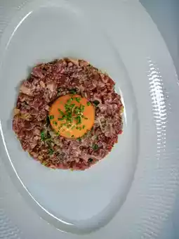We ordered an Italian mixed vegetable soup and beef tartar respectively. The former is quite rich, with potatoes, onions, carrots, beef and other ingredients; beef tartar is made with Australian beef, plus fresh melted egg yolk and marinade.