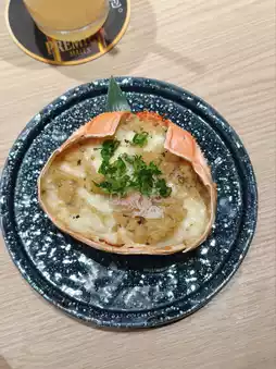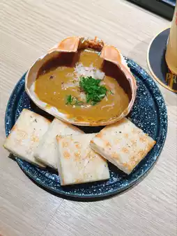 Crab paste stew 🍚 single order $68 💰 Crab paste and rice perfectly blend 😌 surface with crab meat and cheese 🧀 delicious