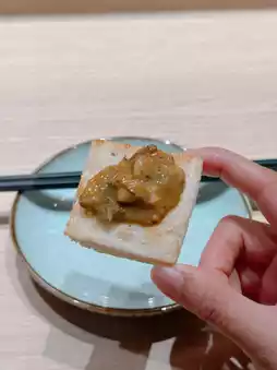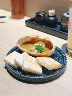 Crab paste toast 🍞 single order $68 💰 crab paste crab meat mixture 🦀 rich crab flavor 😋 spread on golden crispy toast 😗 full of freshness impact taste buds 😉