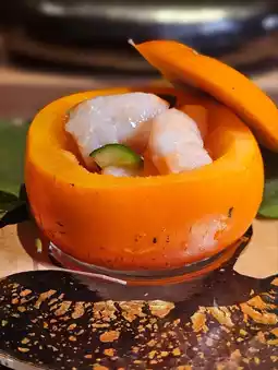The meal begins with an appetizer of Nagano tomatoes and water octopus, refreshing and delightful. The Kyoto-style persimmon box paired with shrimp is uniquely flavorful and memorable. Following this are dishes like white squid with red sea urchin, Aomori Spanish mackerel, and Hokkaido Pacific saury, each showcasing the natural essence of the ingredients. The white-spotted prawn is prepared with shrimp paste, butter, and sweet sake, resulting in a rich and enticing flavor.