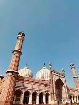 With three grand gates, four towers, and two towering minarets, the mosque can hold over 25,000 worshippers at once. Whether you're here to admire its Mughal artistry, soak in the peace, or climb the minaret for panoramic views of Delhi – Jama Masjid never disappoints.