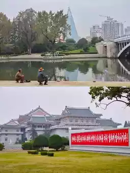 • Attractions: A giant statue of President Kim Il-sung stands in the center of the square, and portraits of Kim Il-sung, Marx, and Lenin hang on the surrounding buildings.