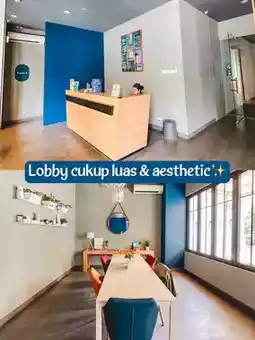#hotelreview I want to share one of my recommendations for affordable capsule hotels in Jakarta! The hotel is super cute and accessible through an app. As soon as we entered the lobby, we were greeted by a super minimalist and aesthetic lobby with blue and white hues.