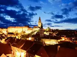 As the sun dips below the castle tower, the cobbled streets of Český Krumlov take on a magical calm. Beginning at the Fountain and Plague Column in the town square, your evening walk unfolds like a scene from a timeless story — golden lights reflecting off pastel facades, soft laughter echoing from nearby cafés, and musicians playing gentle tunes under the night sky.