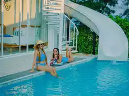 There is a separate kid pool, a large pool, and a super fun slide.