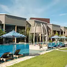 Accommodation in Hua Hin with a nice atmosphere, by the sea, avani+ huahin resort hotel. We stayed in a pool access room, the room was very spacious. There was a sitting area, a dining area, and we could walk straight into the pool. There was also a private bed to chill out on.