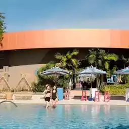 There are 2 swimming pools here, one next to the guest rooms and one on the main pool side. There are bouncy houses for us to play in, along with a large kids club. Families will definitely love it.